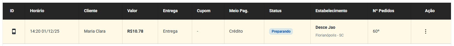 Pedidos teste são aqueles que, após certo período, são excluídos automaticamente do sistema.