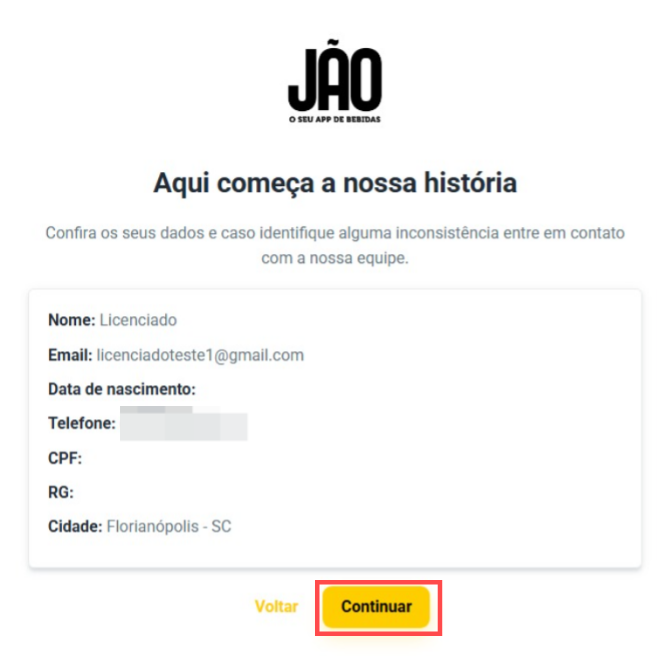 Verifique se todas as informações estão corretas. Se estiverem, clique em “Continuar”.