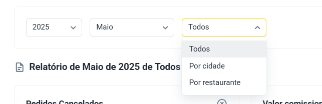 Comissão: total referente às comissões calculadas com base nas vendas e nos percentuais acordados com cada lojista sem contabilizar as taxas de entrega.