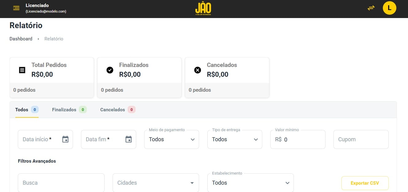 Cancelados: mostra apenas os pedidos com status cancelado.