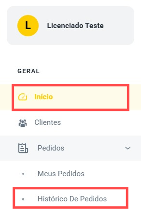 Pra começar, bora entender onde essa busca acontece. A pesquisa é feita direto no seu painel, acessando a aba Pedidos e Histórico de Pedidos, assim: