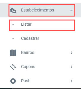 Para fazer essa alteração, acesse o menu Estabelecimentos > Listar.