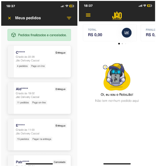 O app Jão Delivery oferece um app para os licenciados, garantindo o acompanhamento completo dos pedidos realizados. A seguir, vamos entender como você, como licenciado, pode utilizar as principais funcionalidades do app: