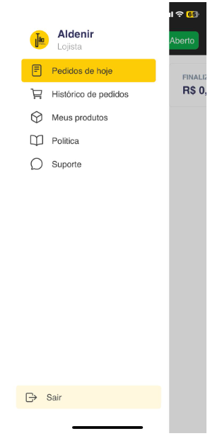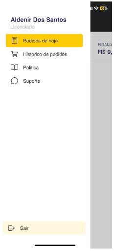 Pedidos de Hoje: Assim como no app do licenciado, o lojista pode visualizar todos os pedidos recebidos no dia atual, possibilitando um controle em tempo real das vendas.
