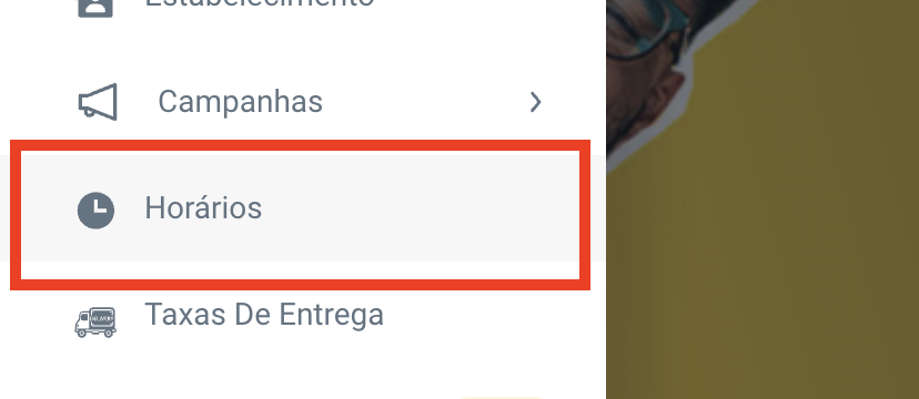 Para configurar basta acessar o painel (lojista) no menu lateral ir em Horários