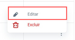 Para editar, basta clicar nos três pontinhos na coluna de ação.
