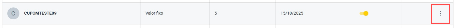 Para editar o seu cupom, o processo segue a mesma lógica de criação: basta selecionar "Cupons" e depois "Listar".
