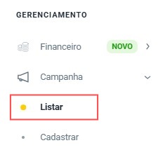 Acesse o painel do licenciado, vá em Campanha e Listar:
