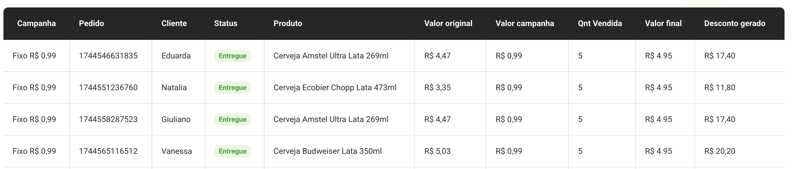 Cada compra realizada por um cliente no sistema gera um código único de pedido. Este código é essencial para identificar transações e monitorar o desempenho da campanha.