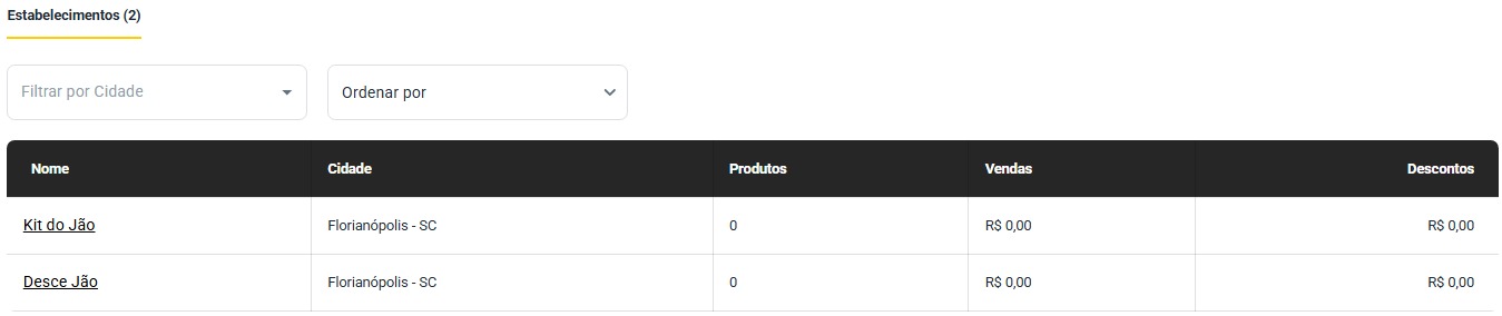 No relatório terá todos os estabelecimentos de sua cidade, selecione clicando no nome da loja.