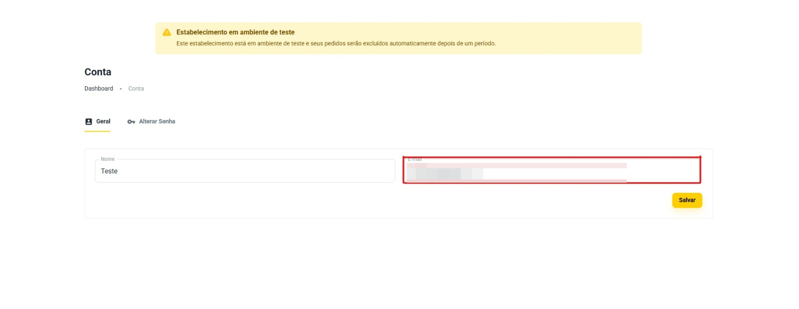 OBS: Se for necessário alterar o e-mail do lojista, é só falar com a nossa equipe de suporte técnico.