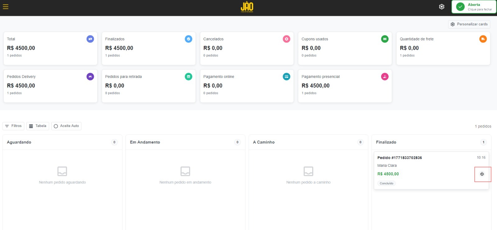 Lembrando que, diferente do painel web, o Gestor Windows realiza a impressão automática dos pedidos após o aceite — basta verificar se a impressora está conectada e funcionando corretamente.