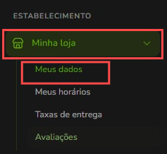 Agora que você está na loja, clique no menu na opção “Minha Loja” e, em seguida, clique em “Meus Dados”.
