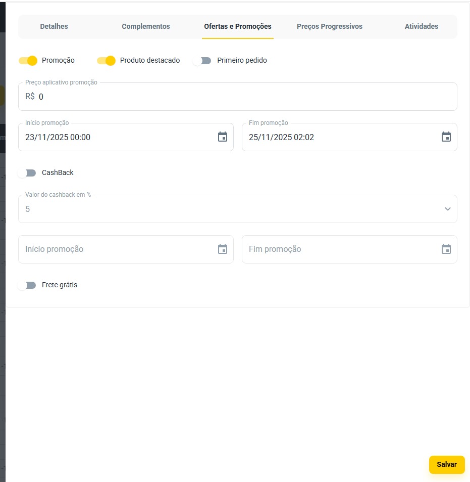 o abrir essa aba, adicione as informações como data, valores, início e fim, entre outros. Faça isso em todos os estabelecimentos que desejar e pronto!
