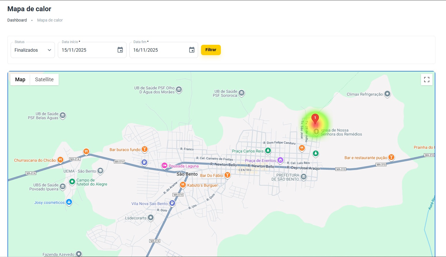 No menu lateral, selecione Mapa de Calor