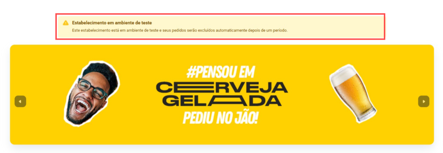 Enquanto estiver nesse modo, aparecerá uma identificação informando que se trata de uma loja teste:
