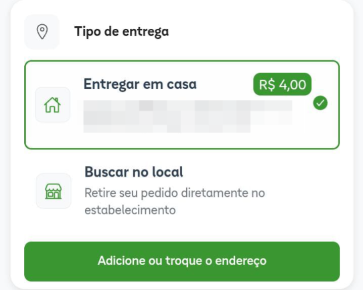 Importante: o endereço precisa ser um que você configurou na taxa de entrega.
