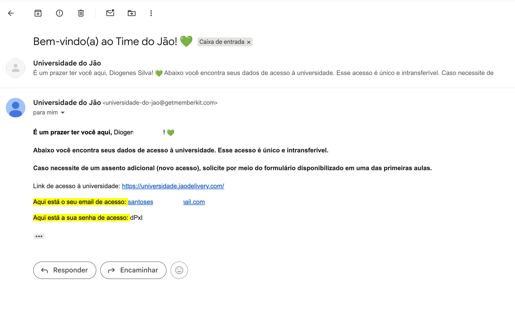 Após a criação do acesso, o usuário recebe por e-mail as informações necessárias para entrar na plataforma.