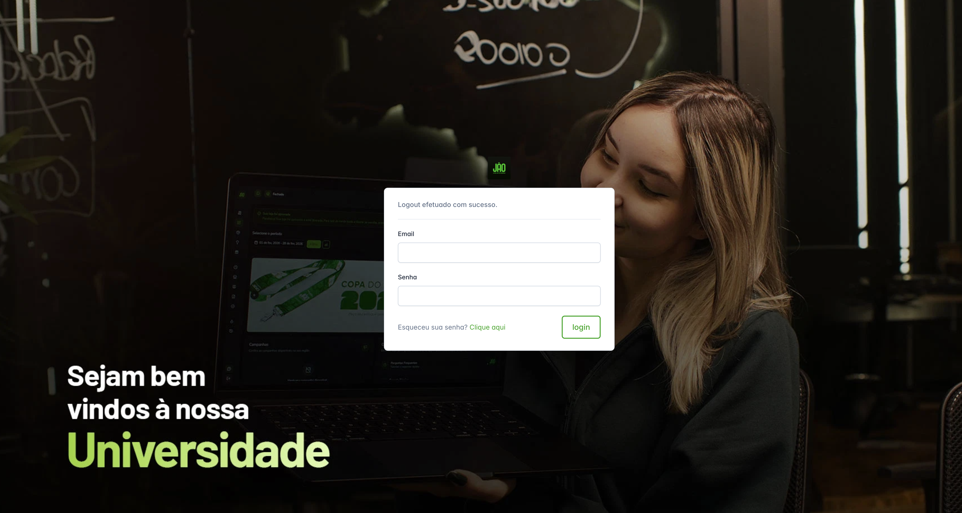 Após clicar no link da universidade presente no e-mail, você será direcionado para a página de login.