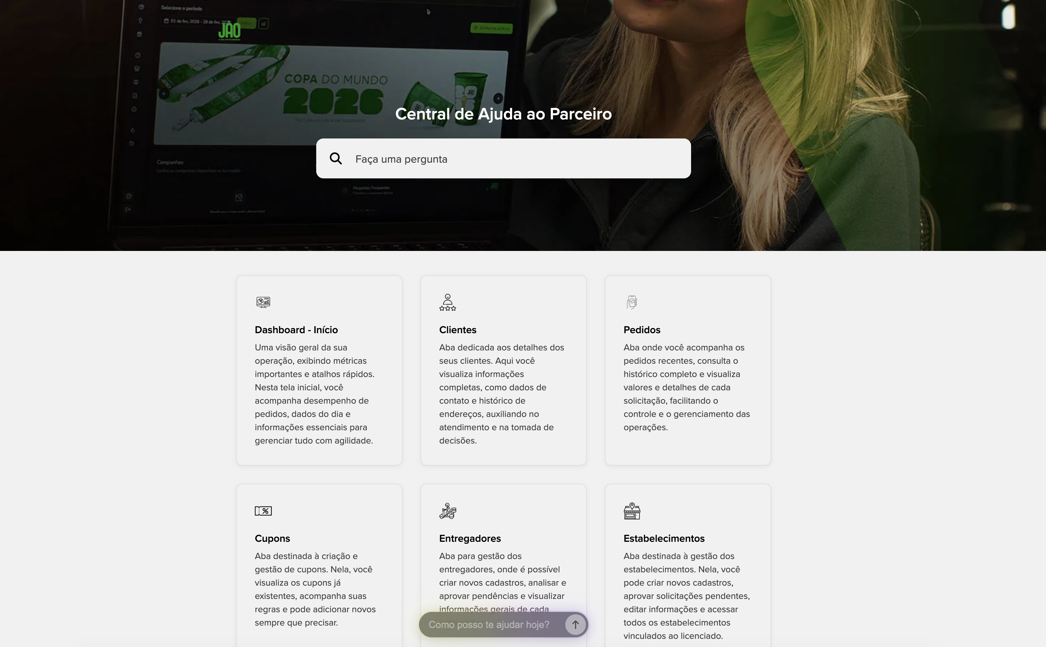 A Central de Ajuda do Jão é o principal lugar onde estão concentrados todos os materiais de apoio para licenciados. Nela você encontra conteúdos sobre a plataforma, marketing, lançamento de cidade, operação e diversas outras informações importantes para o funcionamento do seu negócio.