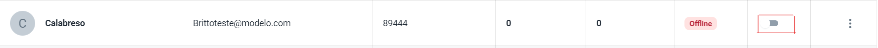 Agora vamos para a última etapa! Você verá que o entregador estará com o status "Offline". Para mudar isso, ele precisará fazer login no app de entregadores.