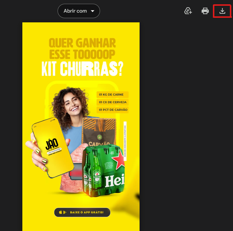 Logo após, será aberta a página com a imagem. Basta clicar no ícone de download, como mostrado na imagem abaixo: