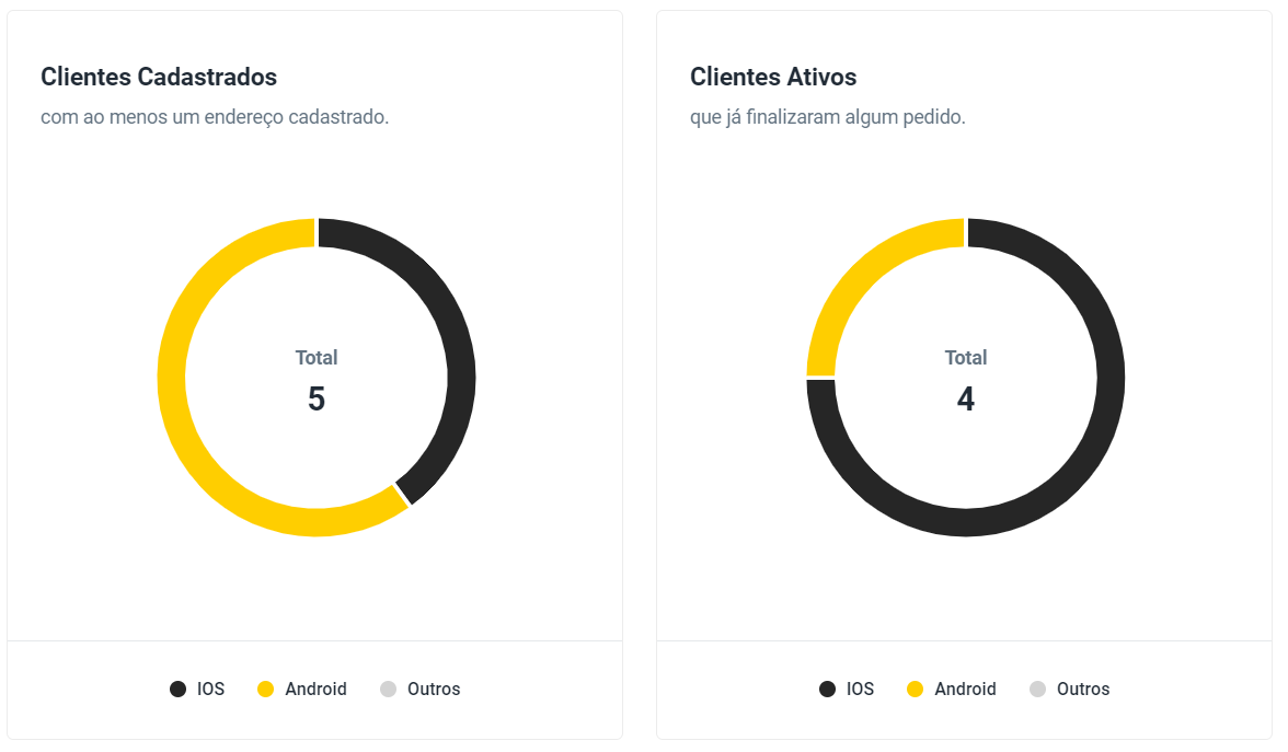 Clientes Cadastrados: indicam os usuários que baixaram o app, se cadastraram e inseriram o endereço no aplicativo. Usuários que baixaram o app, mas não cadastraram um endereço, não aparecem no cálculo do gráfico.